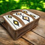 Elevate your everyday style with this handwoven wool and leather tote bag, a perfect blend of artisanal craftsmanship and vintage charm. Featuring a Southwestern Aztec-inspired geometric design, this boho-chic accessory combines beauty and function — ideal for work, travel, errands, or weekend adventures.